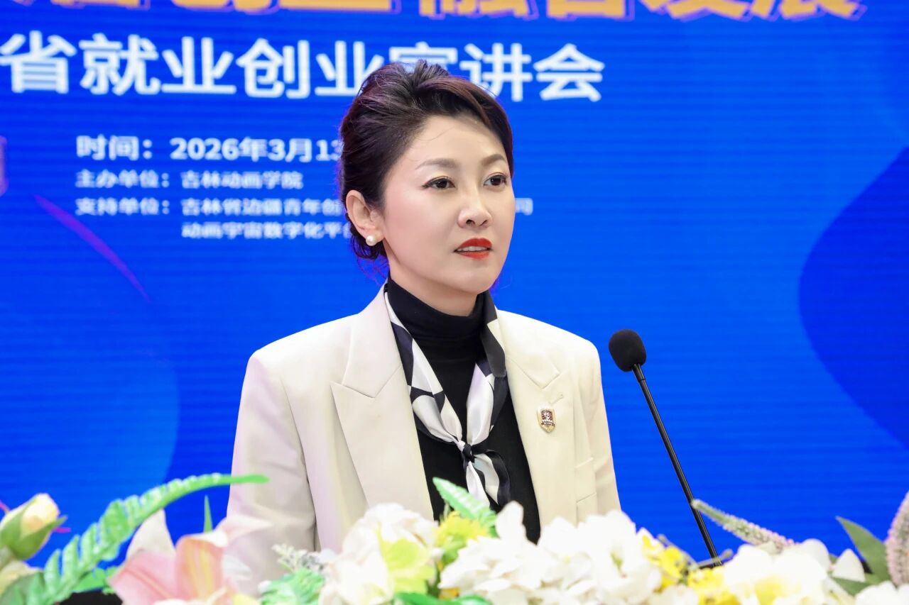 副校长彭巍在致辞中表示,当前吉林正加速从“人才输出地”转向“创业目的地”,吉林省委、省政府出台系列利好政策,为青年留省就业创业筑牢保障。学校坚守“创新、创造、创优、创业”四创文化,深耕动漫、游戏、设计、影视及数字文创等特色领域,搭建起完善的创新创业体系,始终与吉林发展同频共振,全力为学子留省发展搭平台、拓渠道、纾困解难。她鼓励学生们把握吉林振兴机遇,将个人理想融入地方发展,在吉林边疆的热土上扎根建功,学校也将持续深化“学研产一体化”办学特色,发挥学科专业优势,做学生们留省发展的坚实后盾。