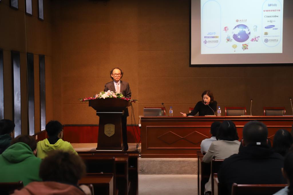 10月10日下午,金时范教授在艺术中心二楼开展了主题为“文化产业市场营销战略”的学术讲座。讲座中,金时范教授运用了丰富的案例和行业前沿知识对营销策略的相关内容进行了讲解,并以“米奇”为例对知识产权方面的相关问题进行了分享。