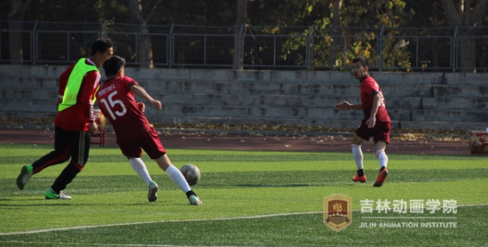 动漫分院足球队员在赛场上奋勇拼搏,彼此信任,讲求配合,不疾不徐,充分展现了团队的配合和必胜的信念,团结一致、齐心协力是实现三连冠之梦的最好诠释。